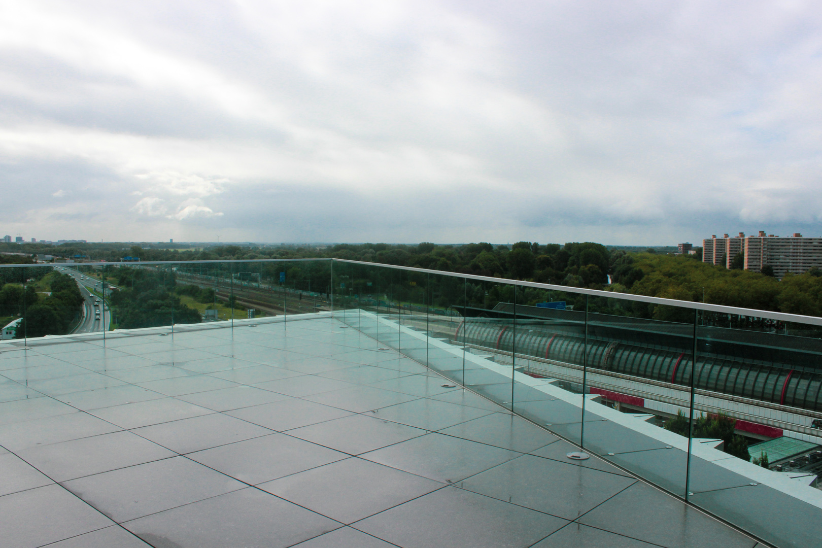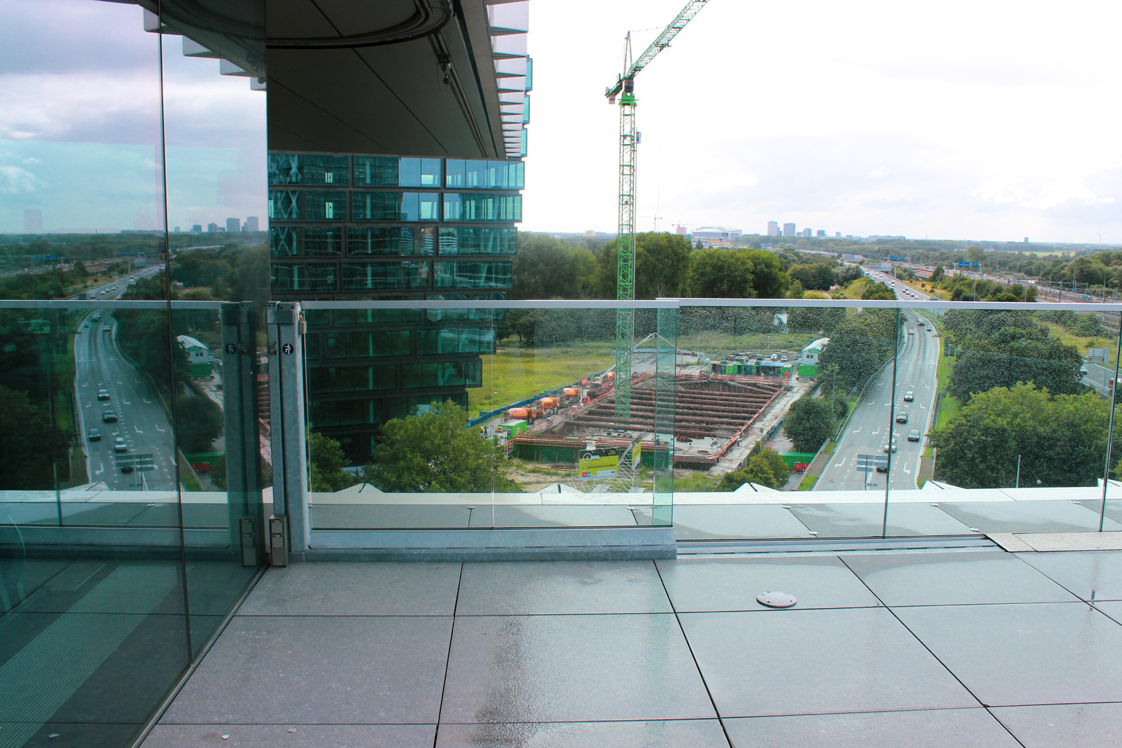 Voor het 17-laagse RAI Hotel op de Amsterdamse Zuidas realiseerden wij de volledige valbescherming op de dakterrassen van verdieping 10 en 17. We ontwikkelden, produceerden en plaatsten schuifpoorten met geïntegreerde glasbalustrades, volledig in lijn met de overige terrasranden. Daarnaast monteerden we volglas balustrades langs de videranden en roltrapaansluitingen. In totaal plaatsten we 224 meter volglas balustrade op onze U-Line Top 3kN en Y-Line 3kN systemen.